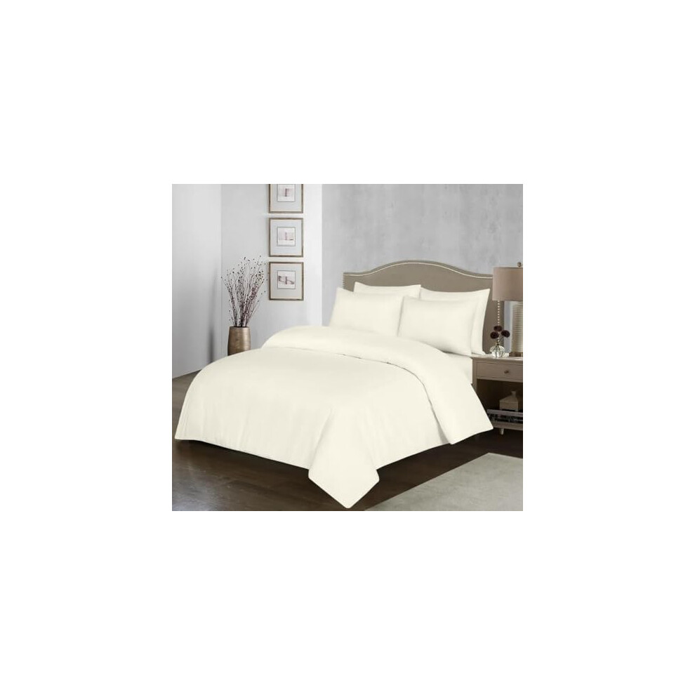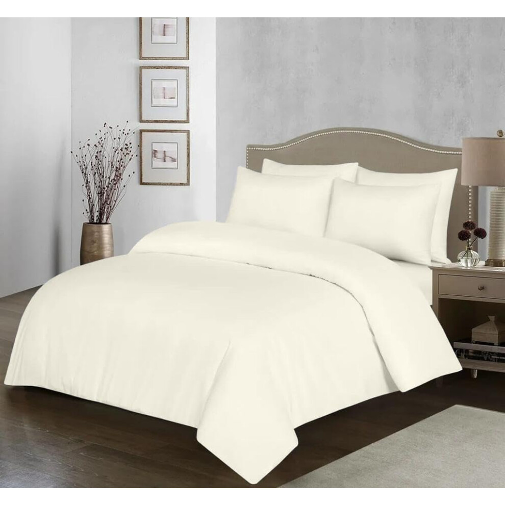100% Egyptian Cotton Duvet Cover Set |200 Thread Count Plain Dyed Duvet Quilt Cover Set With Free Pillowcases| Non-Iron Easycare Bedding Set - Single Double King Super King Sizes (Cream, Double)