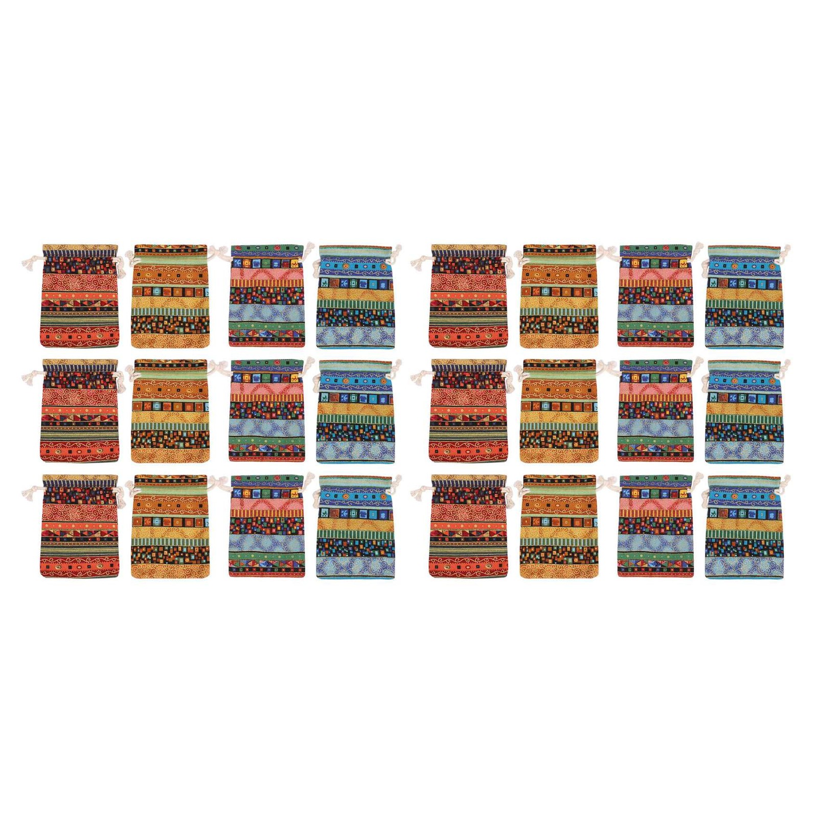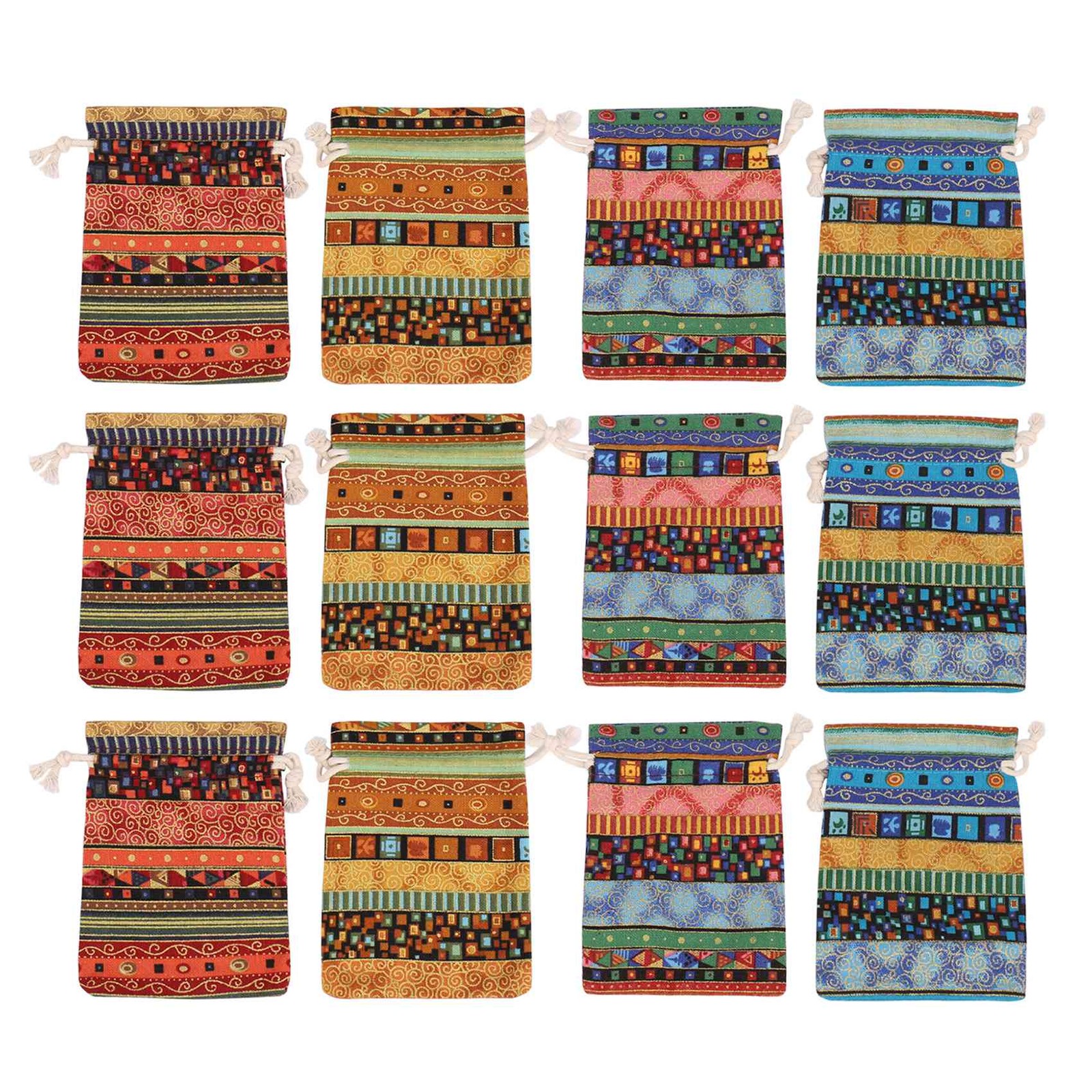 kilofly 12pc Egyptian Style Jewelry Coin Pouches Aztec Print Drawstring Gift Bag
