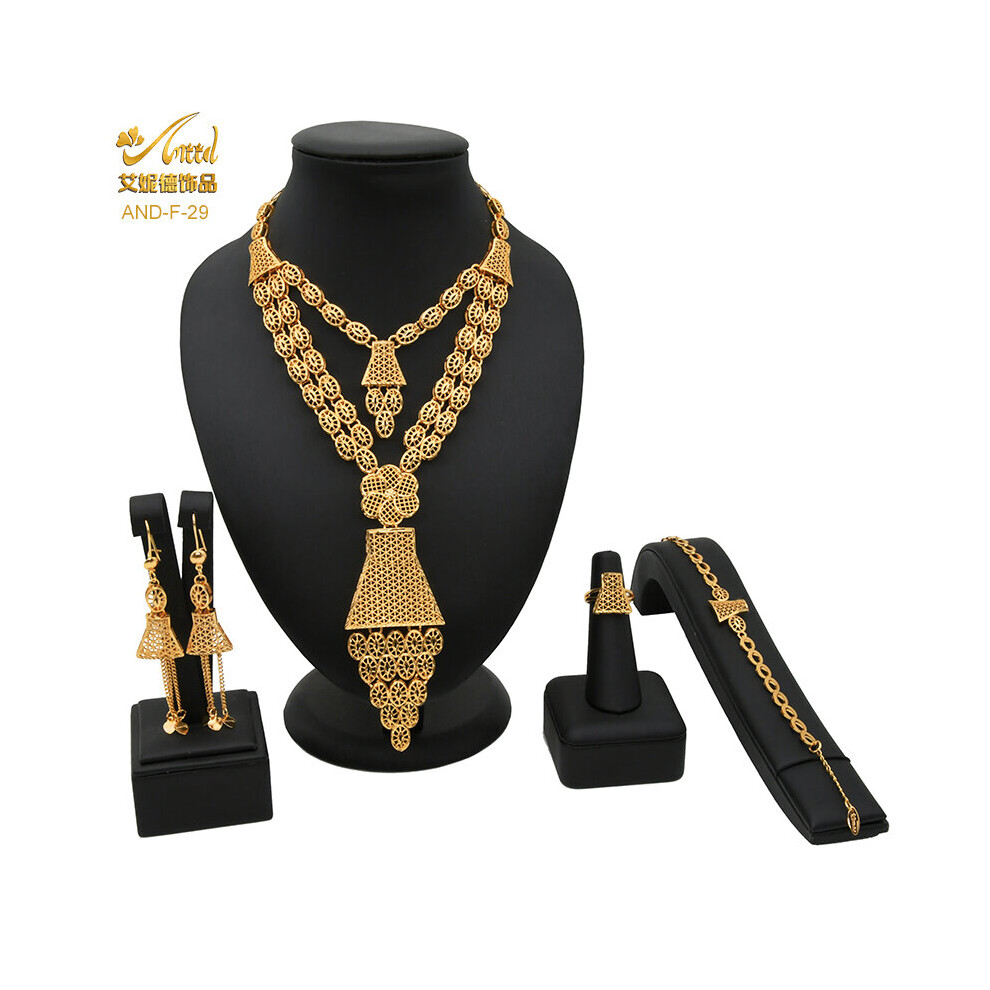 Dubai Plated Jewelry Set For Women Ethiopian Wedding Bride African Necklace and Earring Egyptian Indian Jewellery