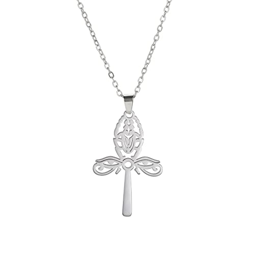 EUEAVAN Egyptian Ankh Cross Eye of Horus Scarab Pendant Necklace Lucky Amulet Key of Life Ankh Cross Egyptian Protection Jewelry Religious Jewelry Woman (silver)