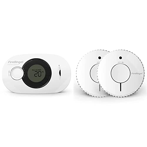 FireAngel FA3820 10 Year Sealed Battery Alarm Carbon Monoxide, Clear & FireAngel Optical Smoke Alarm with 10 Year Sealed For Life Battery, FA6620-R-T2 - Twin Pack , White