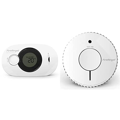 FireAngel Optical Smoke Alarm with 10 Year Sealed For Life Battery, FA6620-R-T2 & FA3313 Carbon Monoxide Detector and Alarm with 1 Year Replaceable Batteries (Replacement for FireAngel CO-9B)