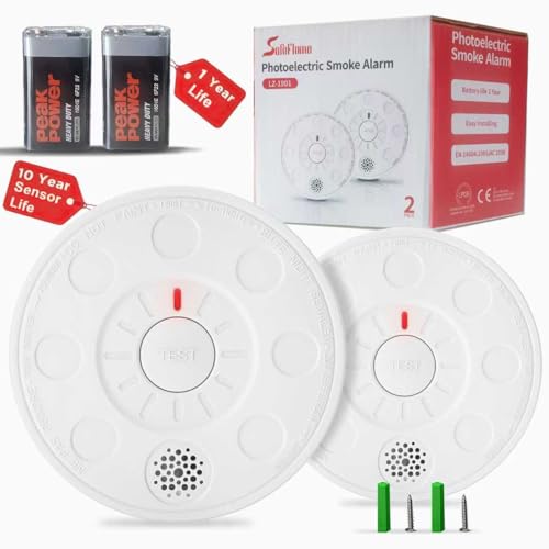 Smoke Alarm for Home, 2 Pack, Smoke Detectors with Test Silence Button Certified EN 14604:2005+AC:2008 Advanced 10 Year Optical Sensor, Low Battery Warning for Enhanced Home Safety