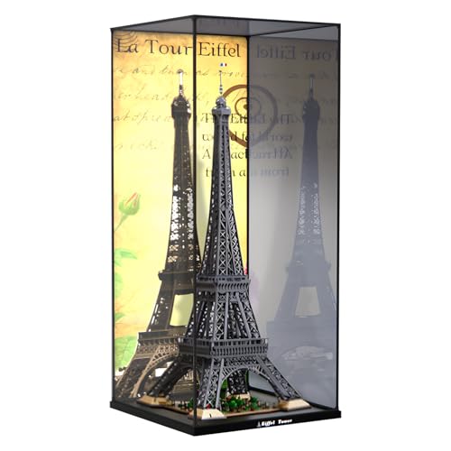Acrylic 3mm Display Box for Lego Eiffel Tower Night Model, Transparent Dustproof Display Box, Storage Box, Compatible with Lego Eiffel Tower Night Model (Model Not Included) (Wooden Base)