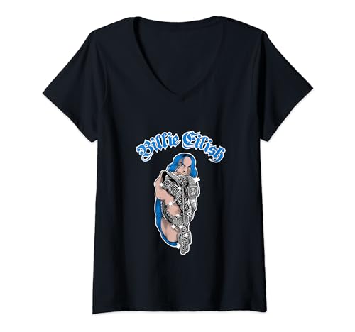 Womens Billie Eilish Official Blohsh Blue V-Neck T-Shirt