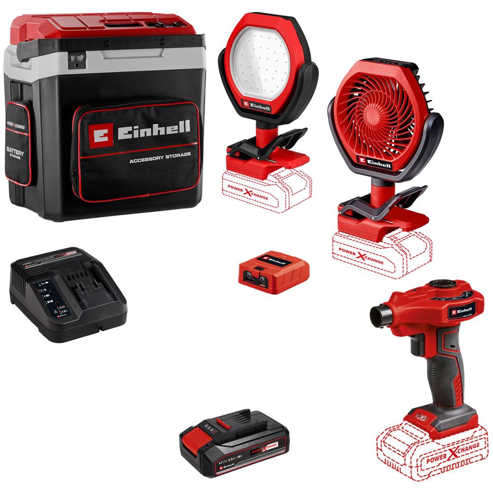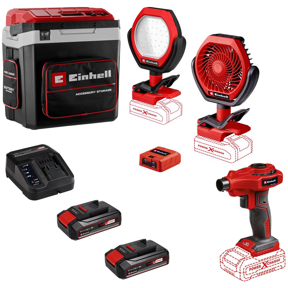 Einhell CAMPER 18v Cordless Cool Box and Warmer with Camping Accessory Kit 1 x 2.5ah Li-ion Battery Charger