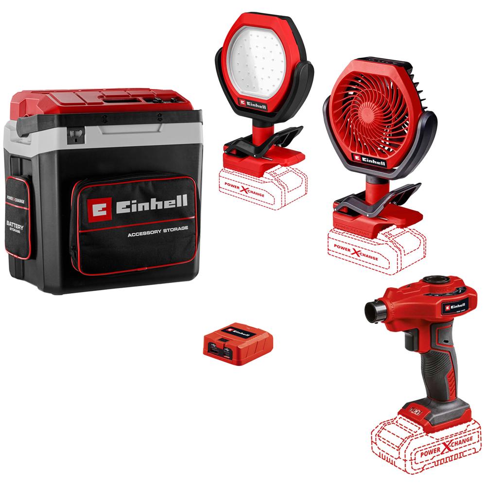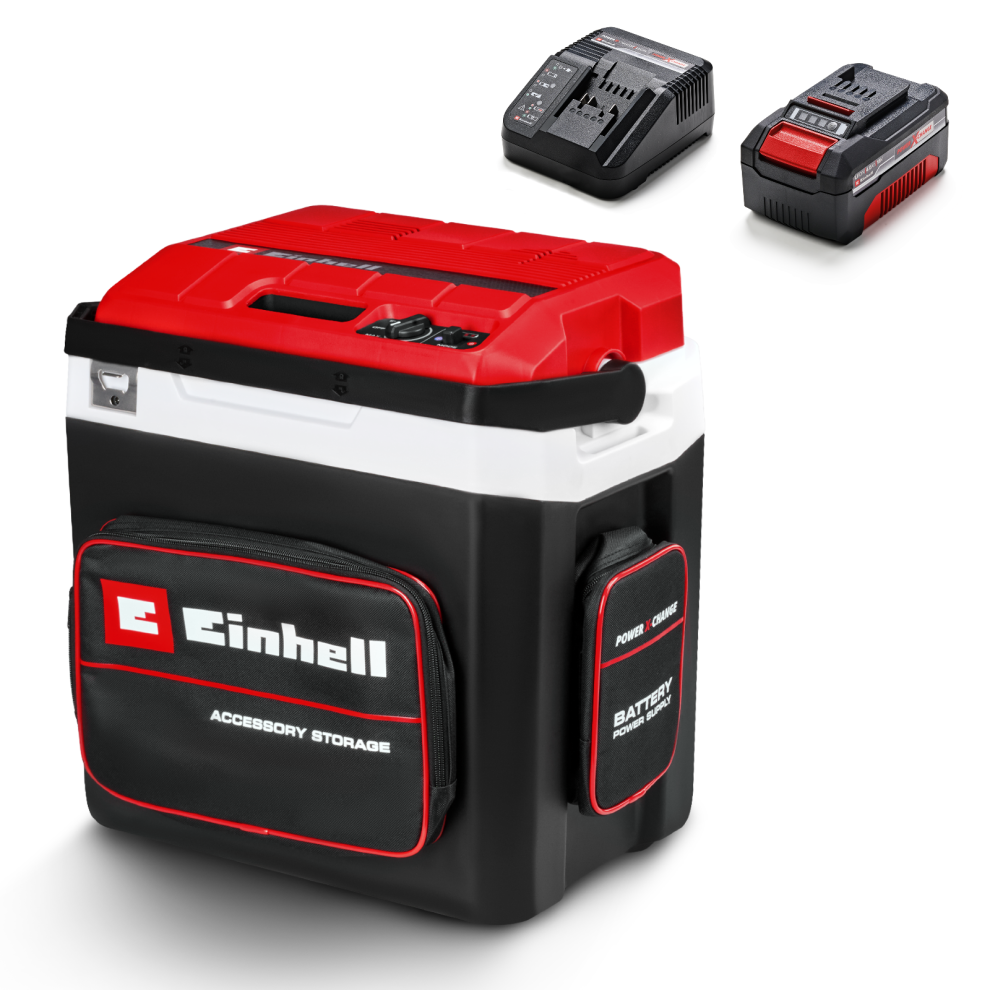 Einhell CAMPER 18v Cordless Cool Box and Warmer with Camping Accessory Kit 1 x 4ah Li-ion Battery Charger