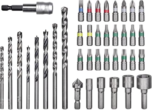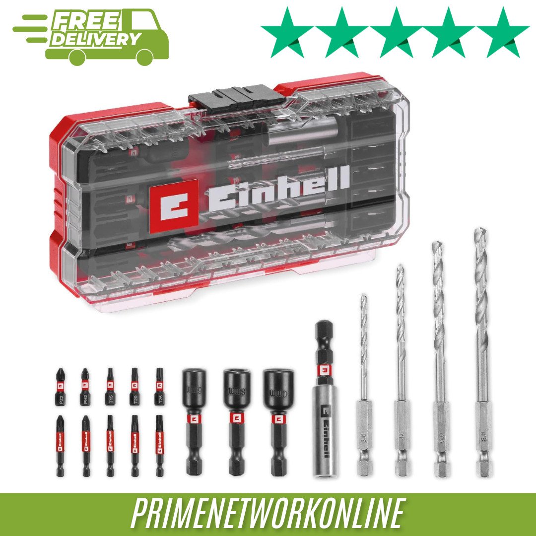 Original Einhell 39-Piece Bit and Drill Set for Stone, Metal, Wood (8x Drills, 24x Bits, 5x Socket Spanner Insert, 1x Countersink, 1x Quick Change Bit Holder, Storage Box)