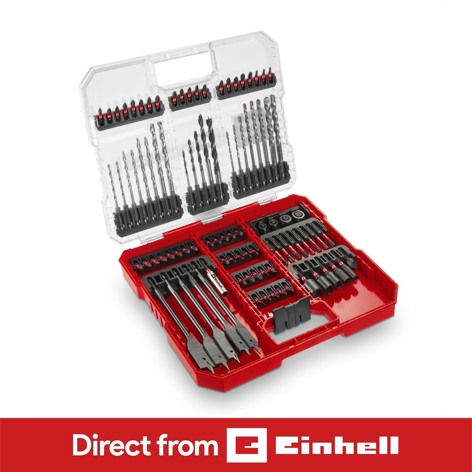 Original Einhell XL-CASE 95-Piece Bit and Drill Set (Bits, Various Drill Bits, Quick-Change Bit Holder, Socket Spanner, Countersink, Drill Stop, Pin Spanner incl. Storage Box)