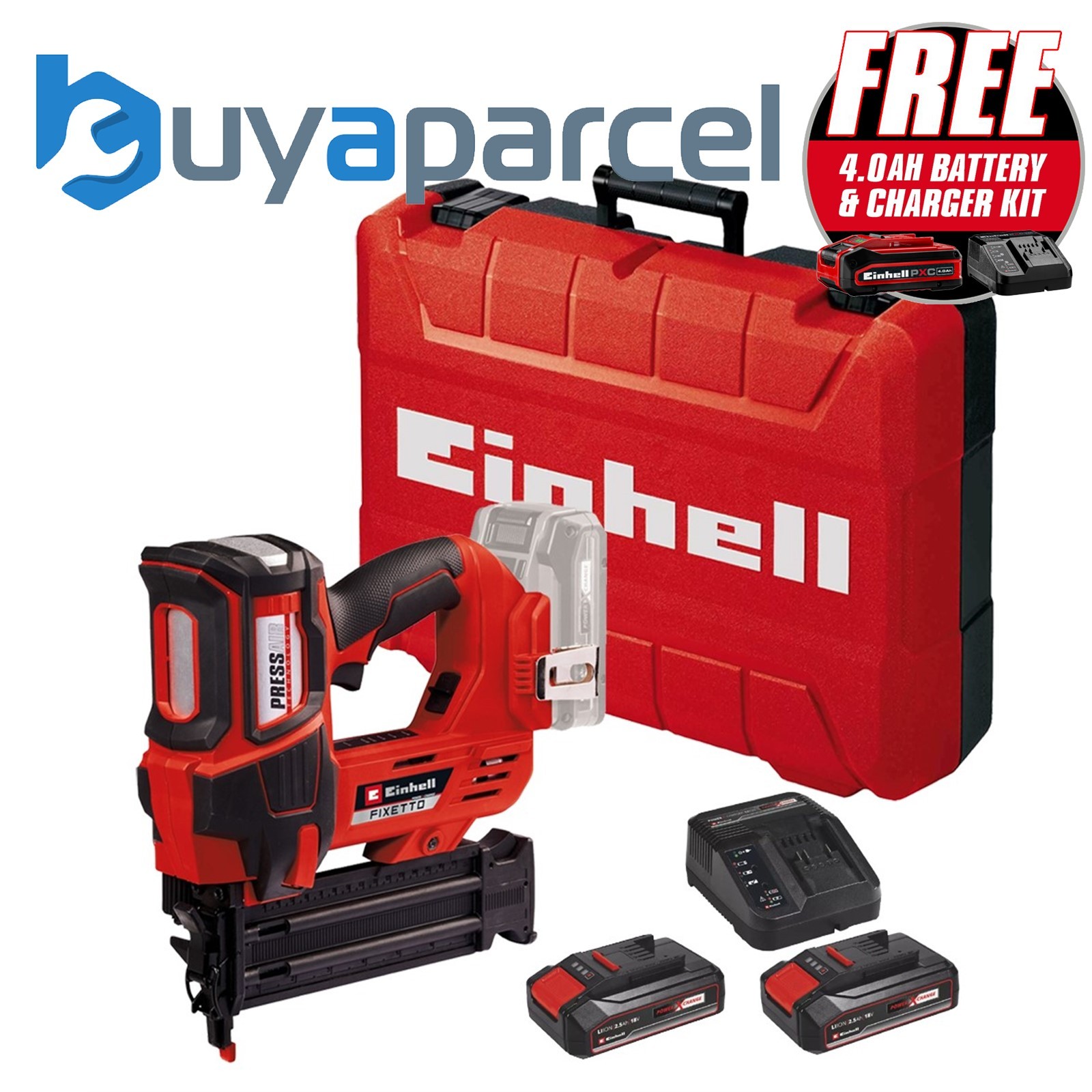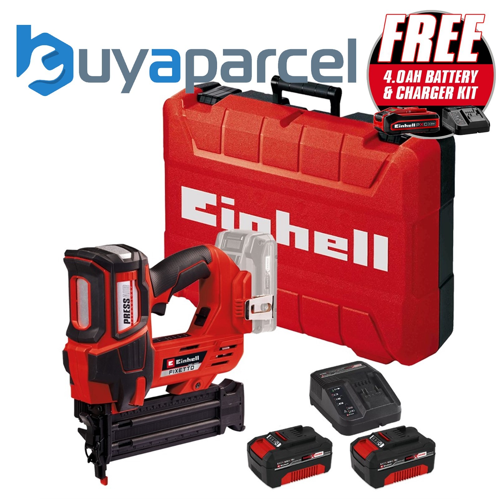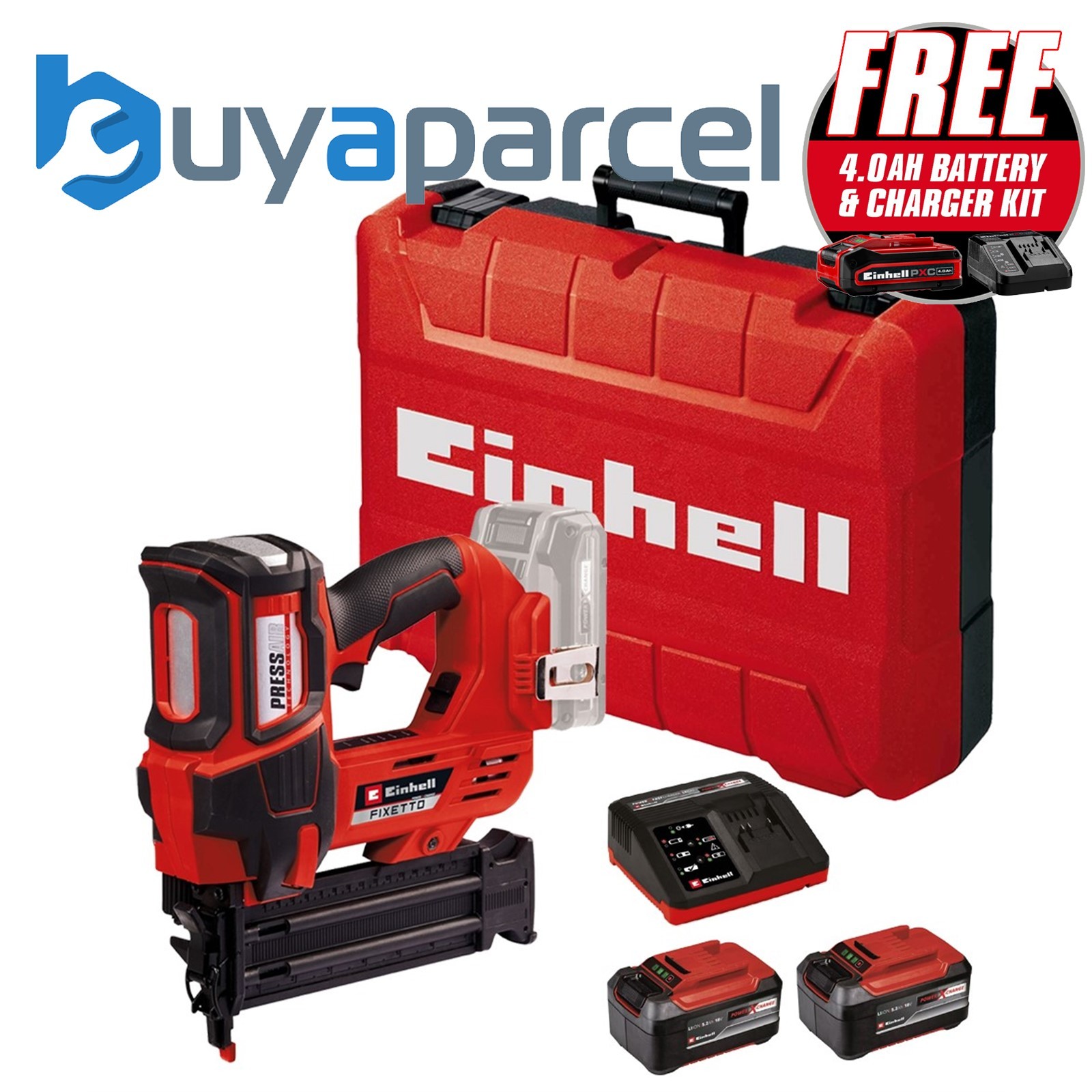 Einhell Power X-Change 18v Cordless Nailer Nail Gun + x2 4AH Kit + Carry Case