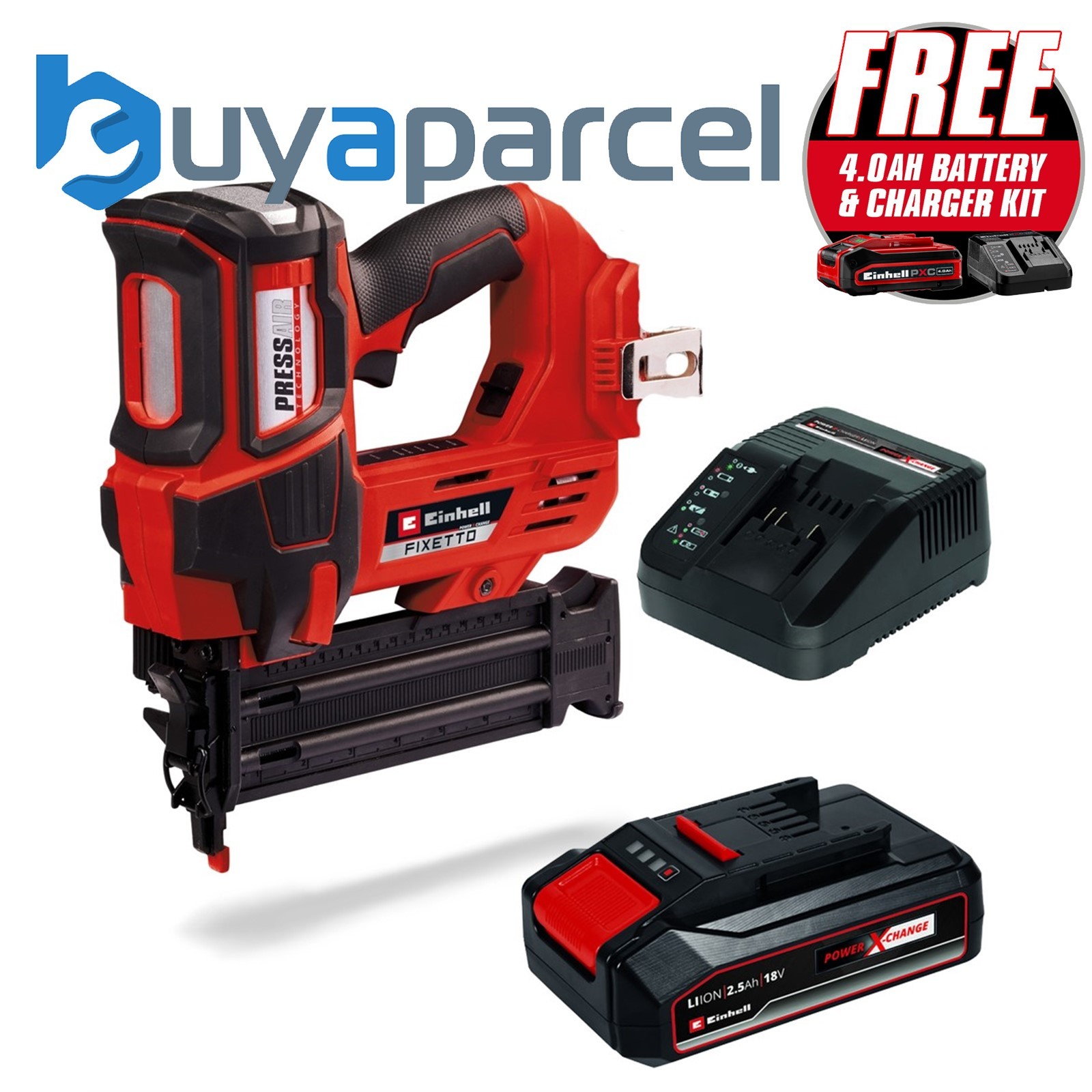 Einhell Professional FIXETTO 18/50 N 18v Cordless Nail Gun 2 x 2.5ah Li-ion Battery Charger No Case