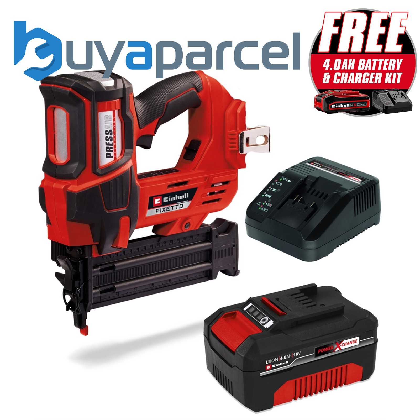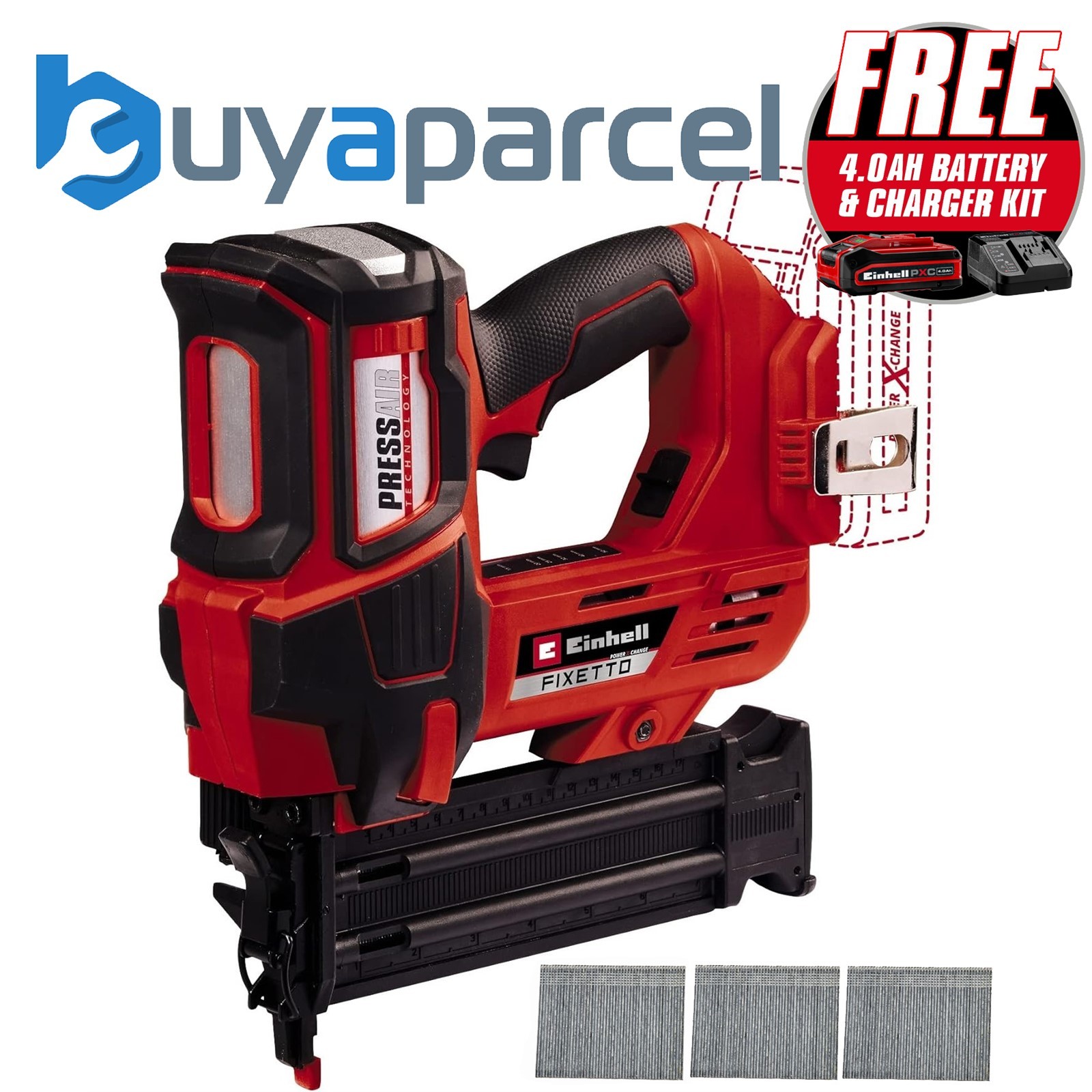 Einhell Power X-Change 18v Cordless Nailer FIXETTO Brad Nail Gun 18/50 +4AH Kit