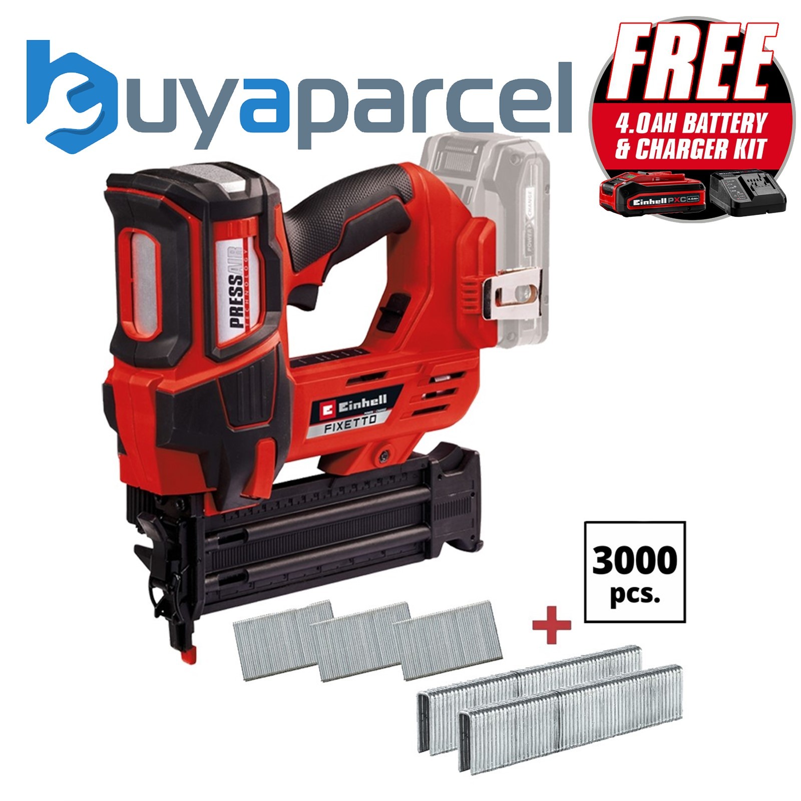 Einhell Power X-Change 18v Cordless Nailer FIXETTO Brad Nail Gun + 3500 Staples