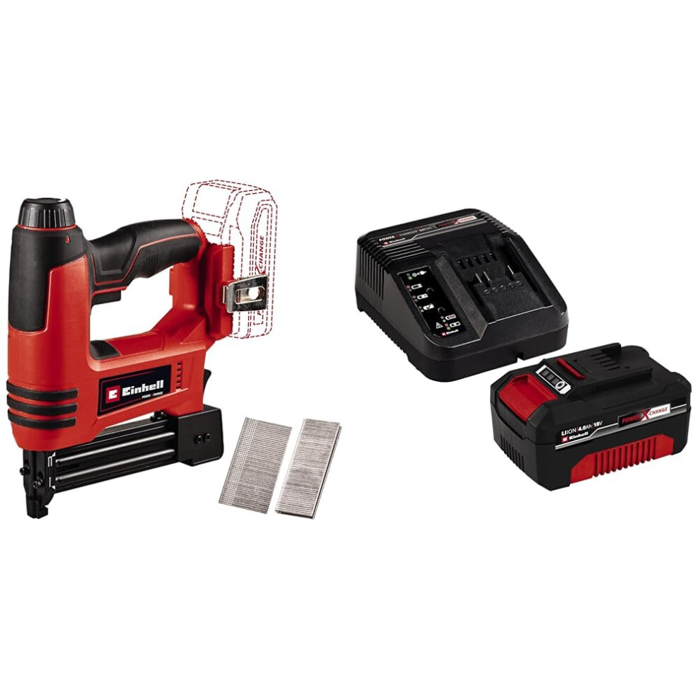 Einhell 18V Cordless Nail Gun, Power X-Change, 2-In-1 Brad Nailer & Stapler, 20 Shots Per Minute, Includes 300 Nails And 300 Staples (Battery And Cha
