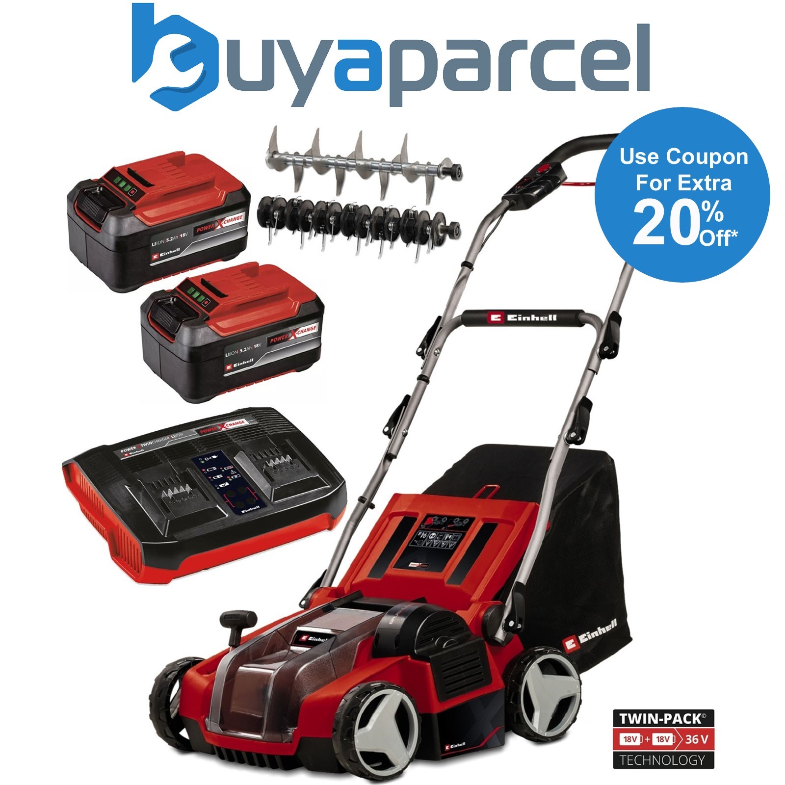 Einhell GE-SA 36/35 Li 36v Cordless Scarifier 350mm 2 x 5.2ah Li-ion Twin or Dual Battery Charger