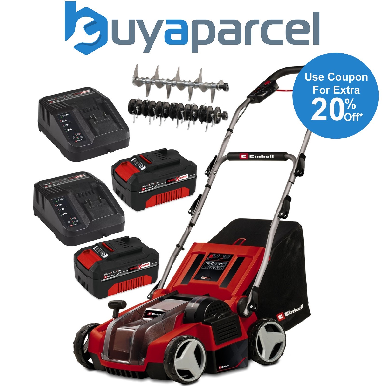 Einhell GE-SA 36/35 Li 36v Cordless Scarifier 350mm 2 x 4ah Li-ion Twin or Dual Battery Charger