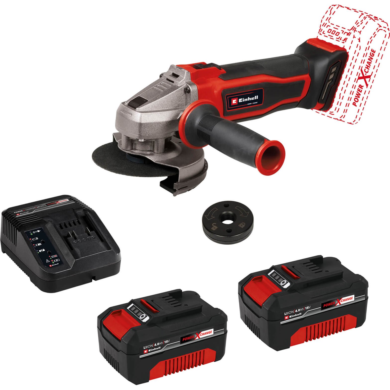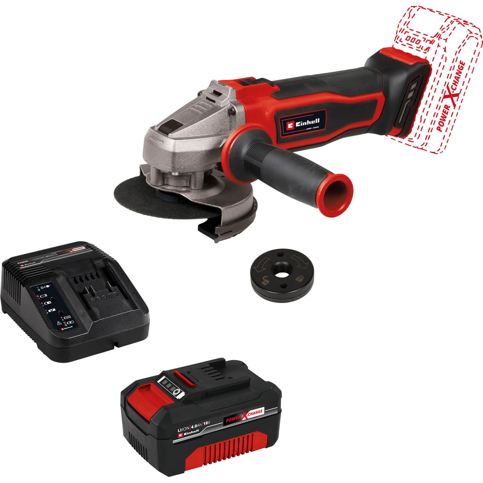 TE-AG Angle Grinder Kit 115mm 18V Li Ion Cordless 4Ah Battery - Einhell 4431134