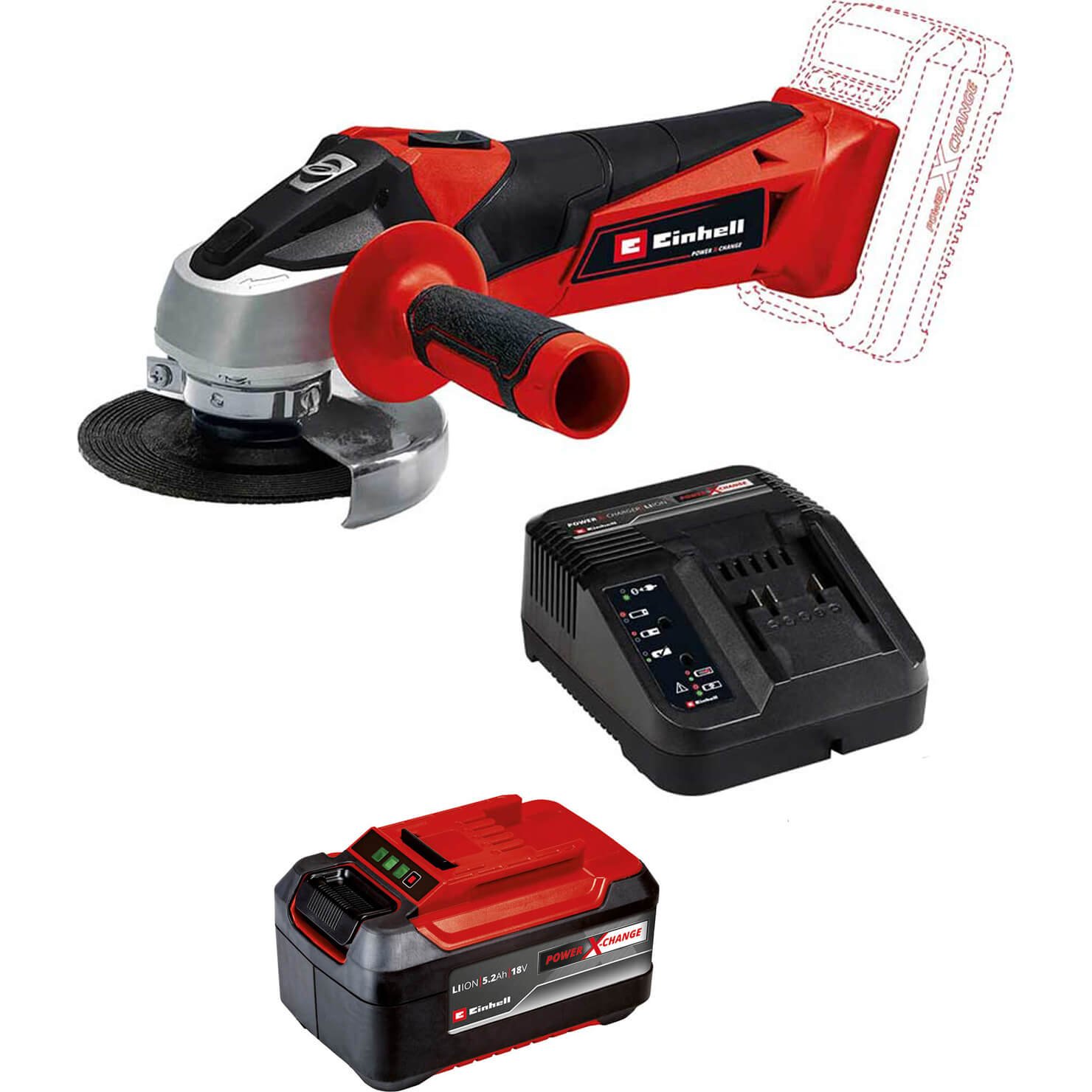 Einhell TE-AG 18/115 Q Li 18v Cordless Quick Fix Angle Grinder 115mm 1 x 5.2ah Li-ion Battery Charger No Case