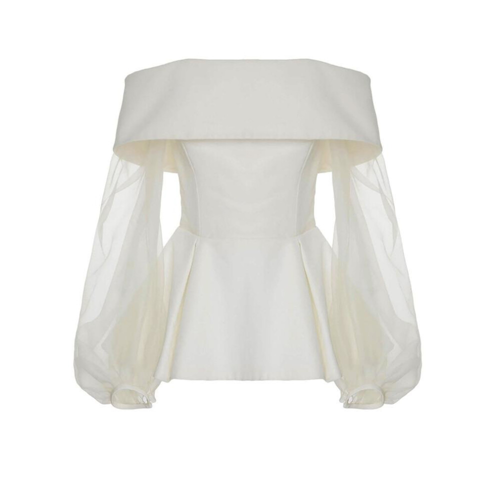 Pure Color Boat Neck Bishop Sleeve White Day Top