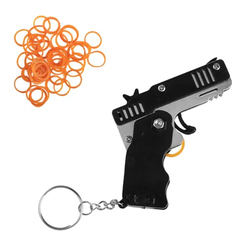 Hopzab Foldable Rubber Band Gun Keychain, Portable Mini Soft Elastic Launcher Toy, Safe Battery-Free Interactive Game Accessory, Black with 120 Bands