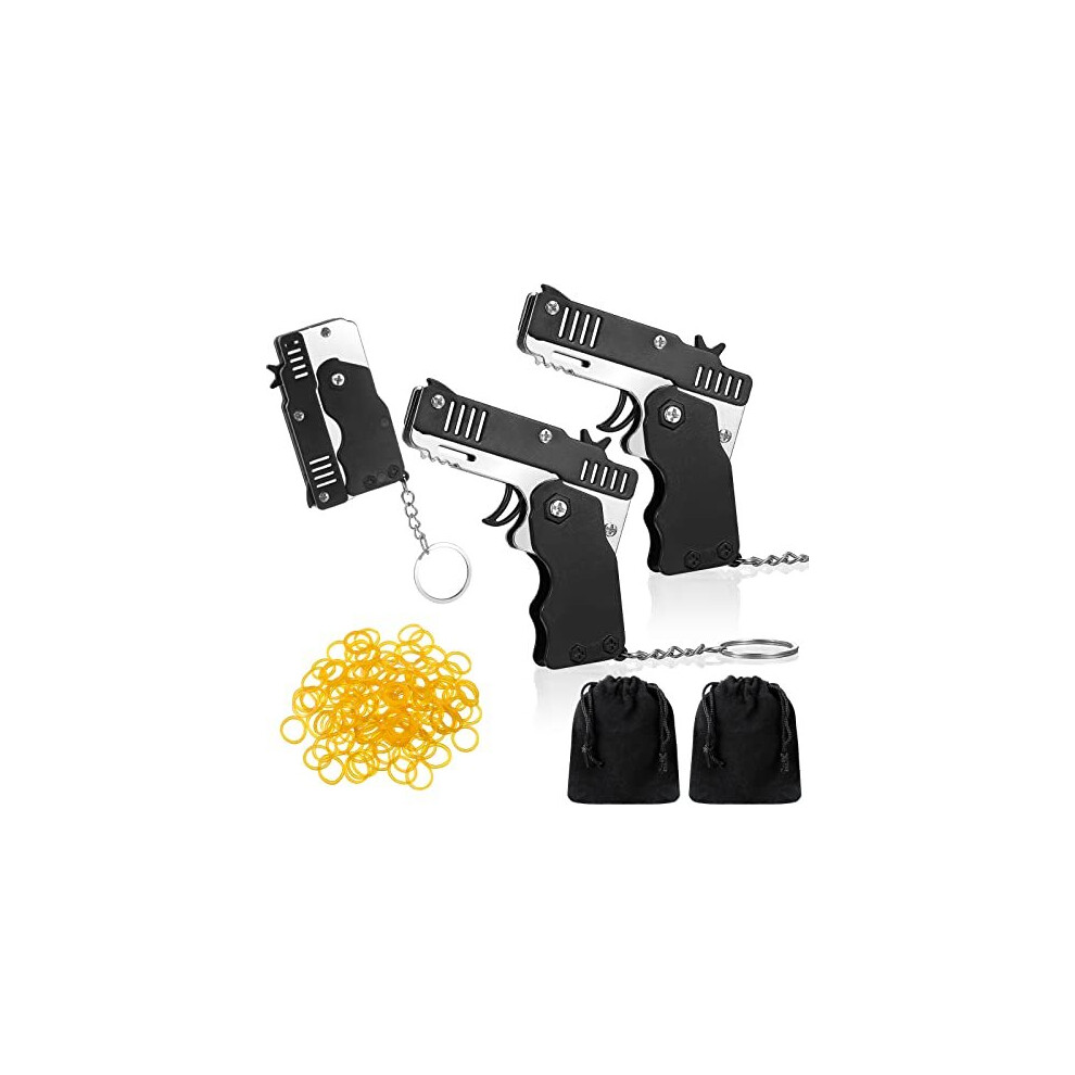 2 Pcs Collapsible Rubber Band Gun Toy with 120 Pcs Soft Elastic Rubber Bands Metal Folding Rubber Launcher Toy Keychain Portable Rubber Band Shooter