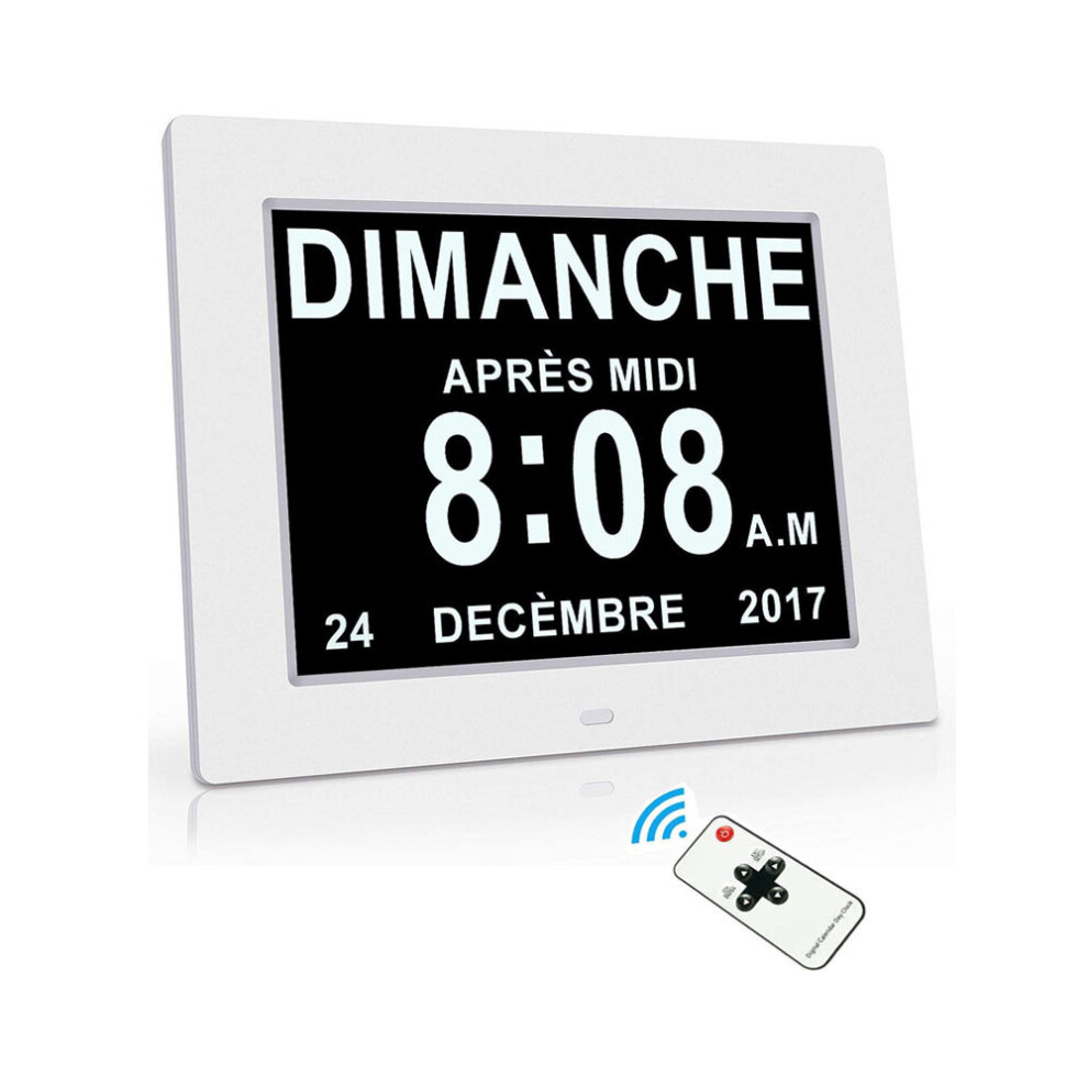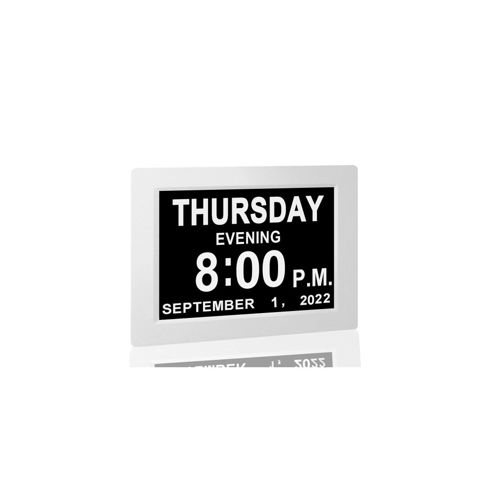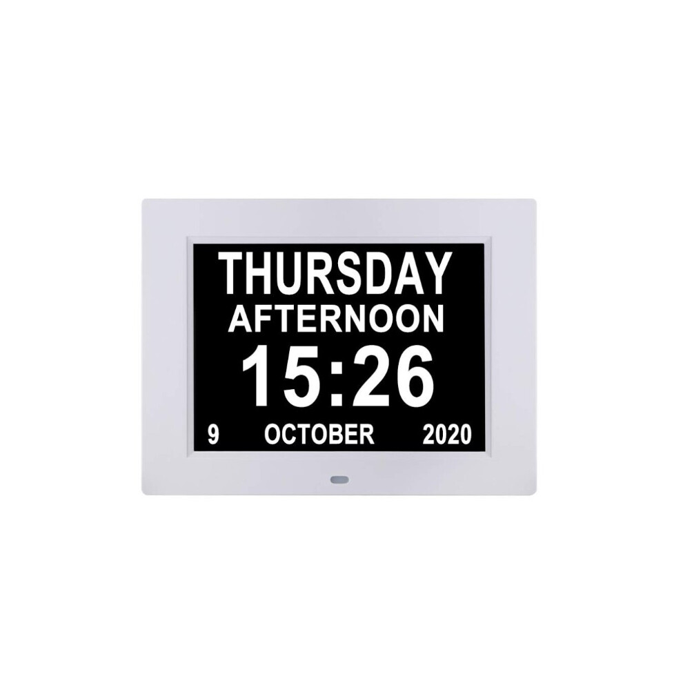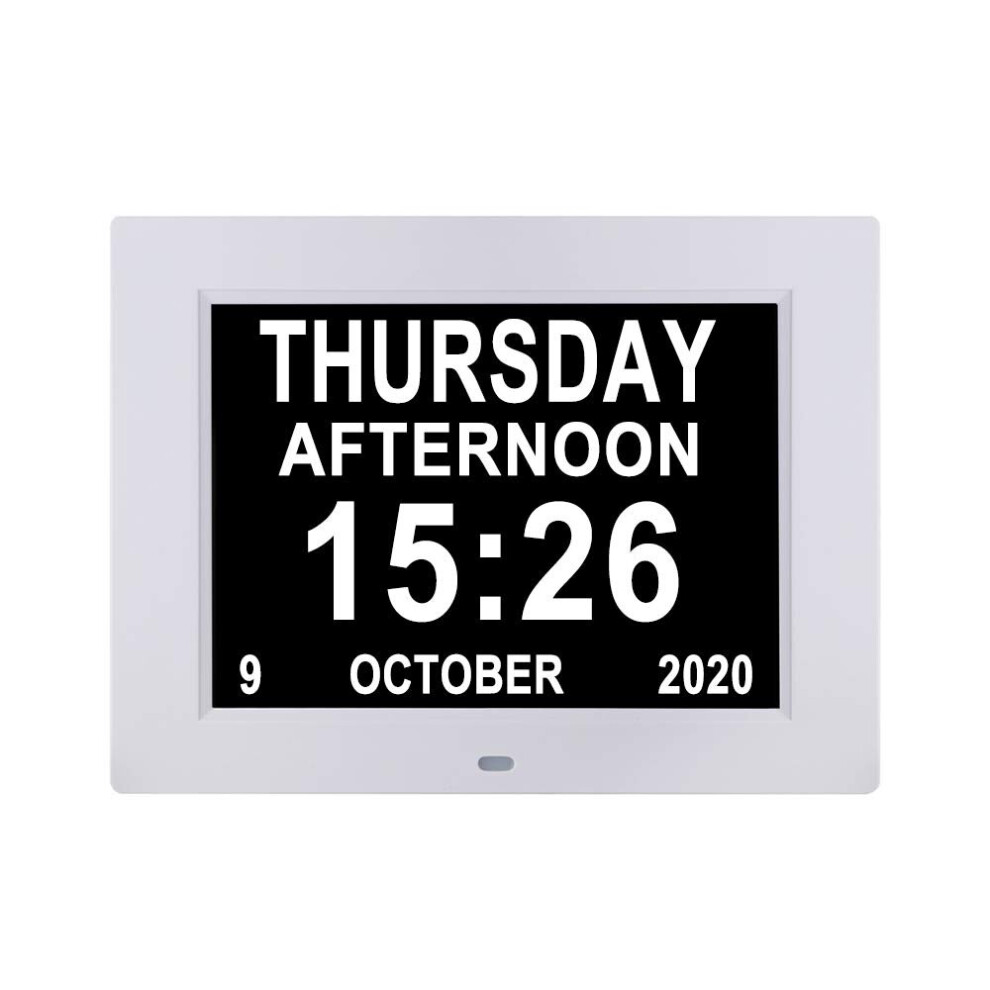 (8 Inch, White) Digital Alarm Clock Dementia Elder Christmas Gifts Calendar Memory