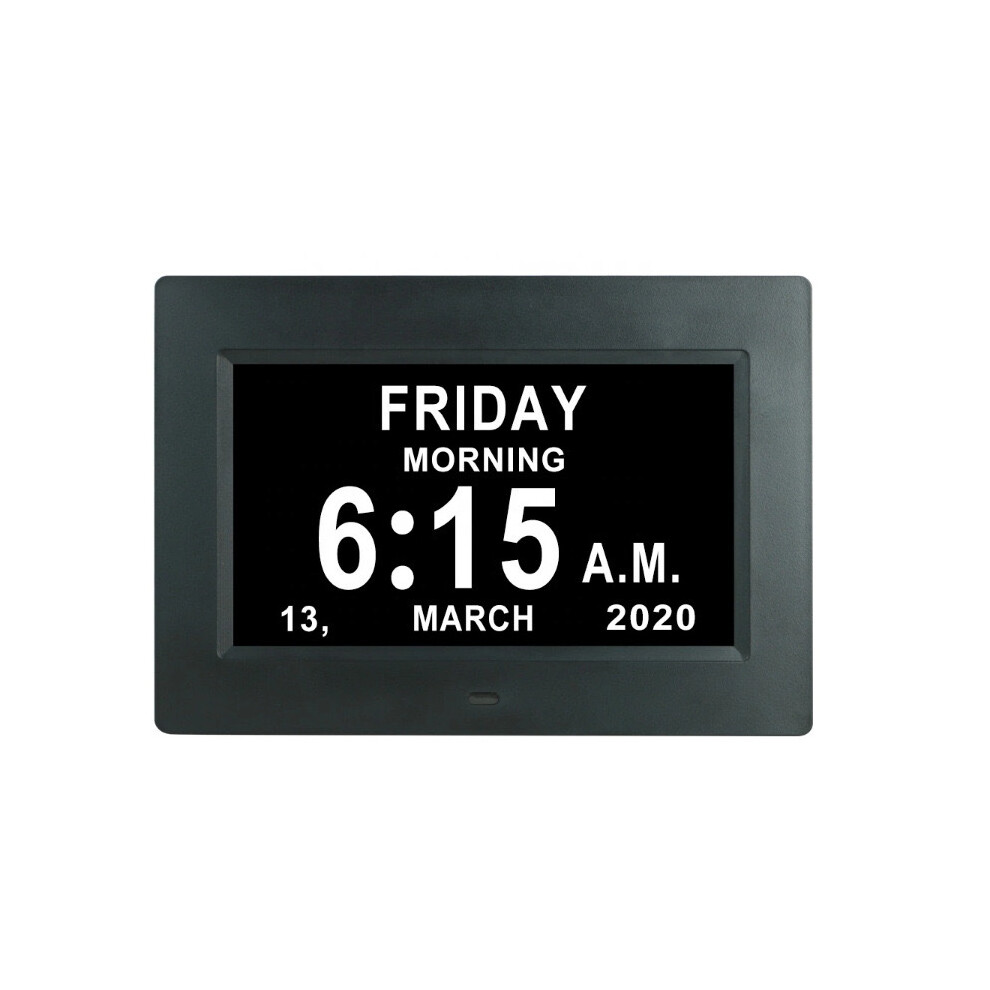 (7 Inch, Black) Digital Alarm Clock Dementia Elder Christmas Gifts Calendar Memory
