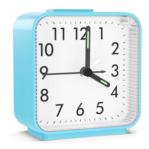 ORIA Silent Alarm Clock, Battery Operated Bedside Clocks, Luminous Large Display, Snooze Night Light Function, Gentle Wake, Easy Set for Elder (Blue, Powered by 1 AA Battery, Not Included)