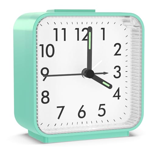 ORIA Silent Alarm Clock, Battery Operated Bedside Clocks, Luminous Large Display, Snooze Night Light Function, Gentle Wake, Easy Set for Elder (Green, Powered by 1AA Battery, Not Included)