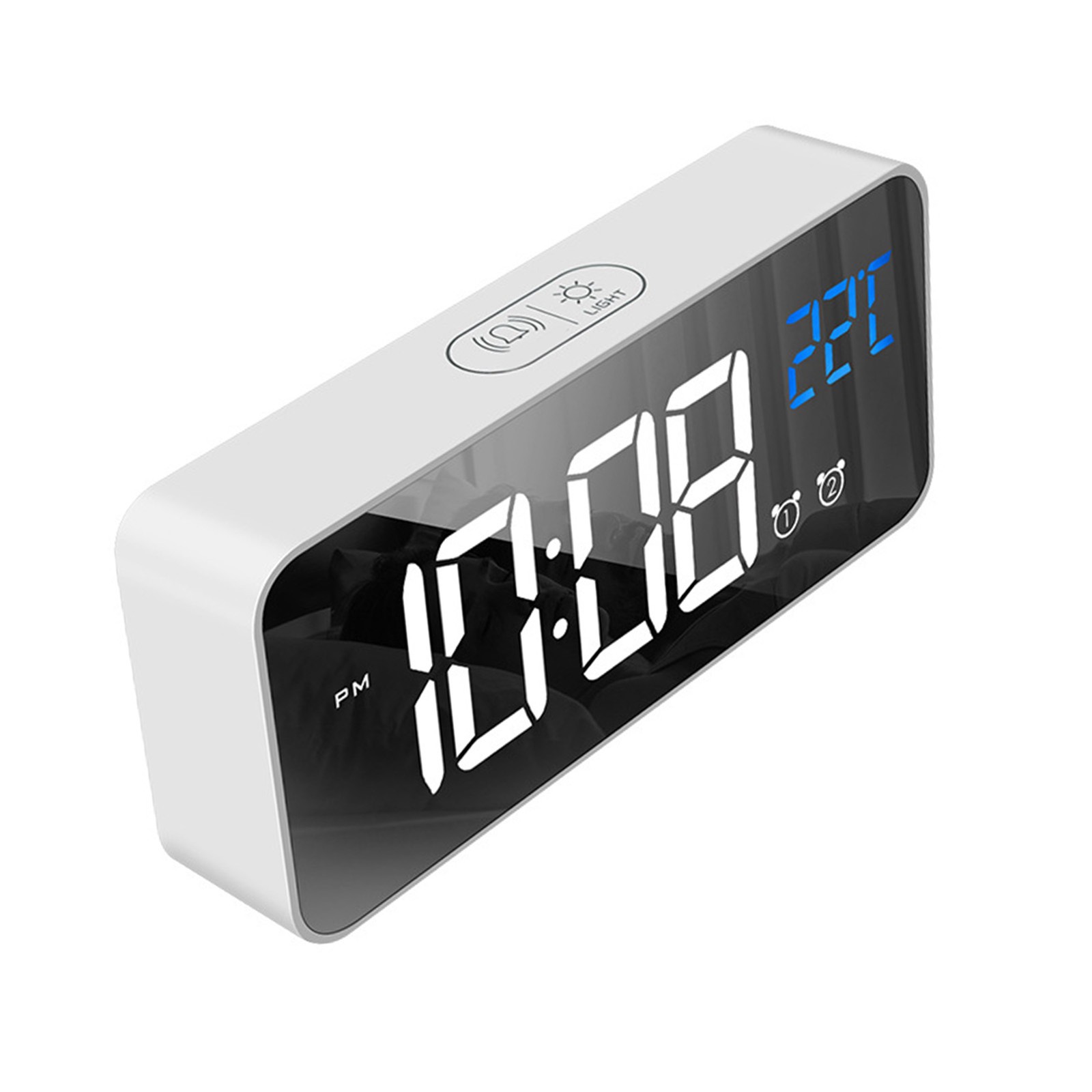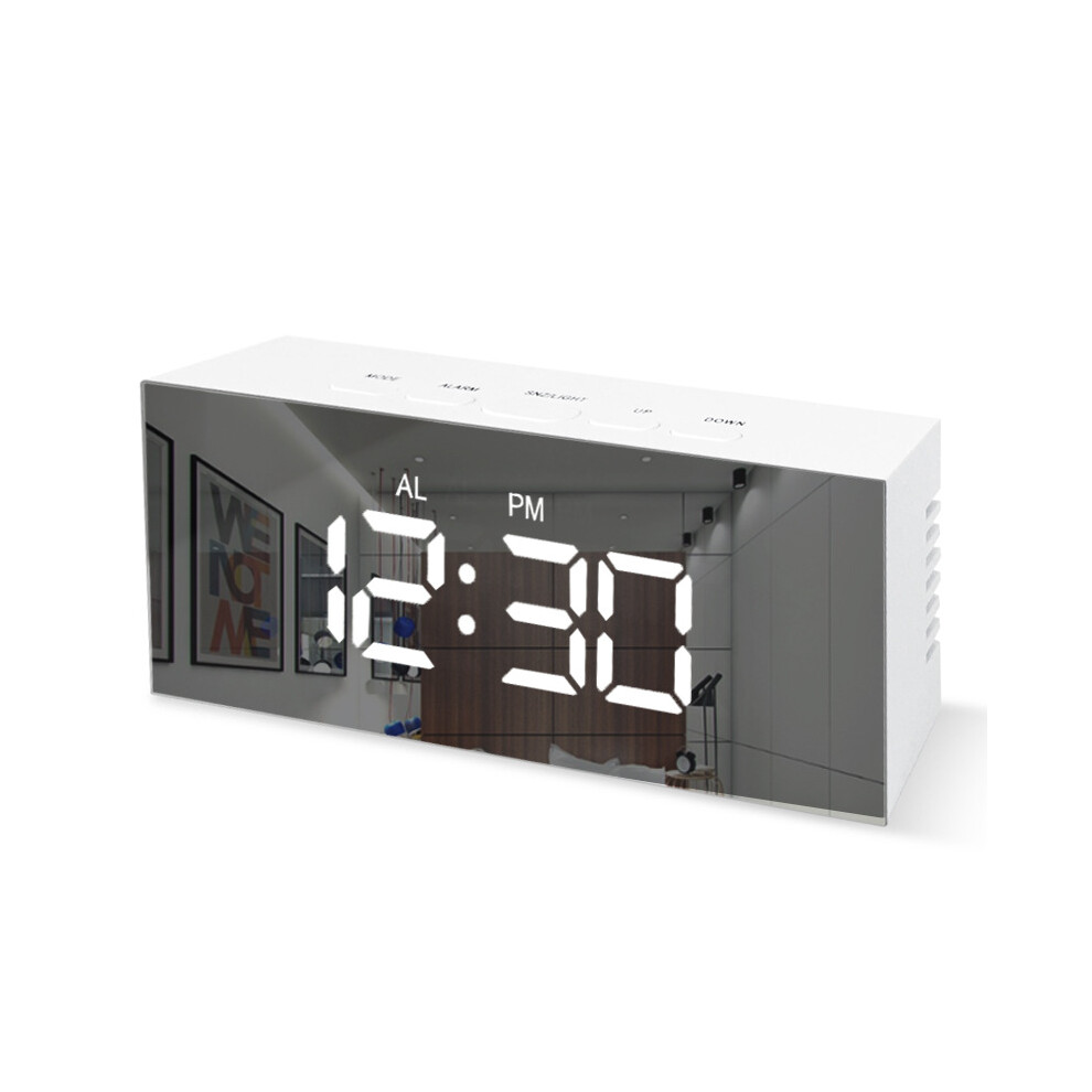 White LED Alarm Electric Clock Multifunctional Exquisite Mirrored Si HOT