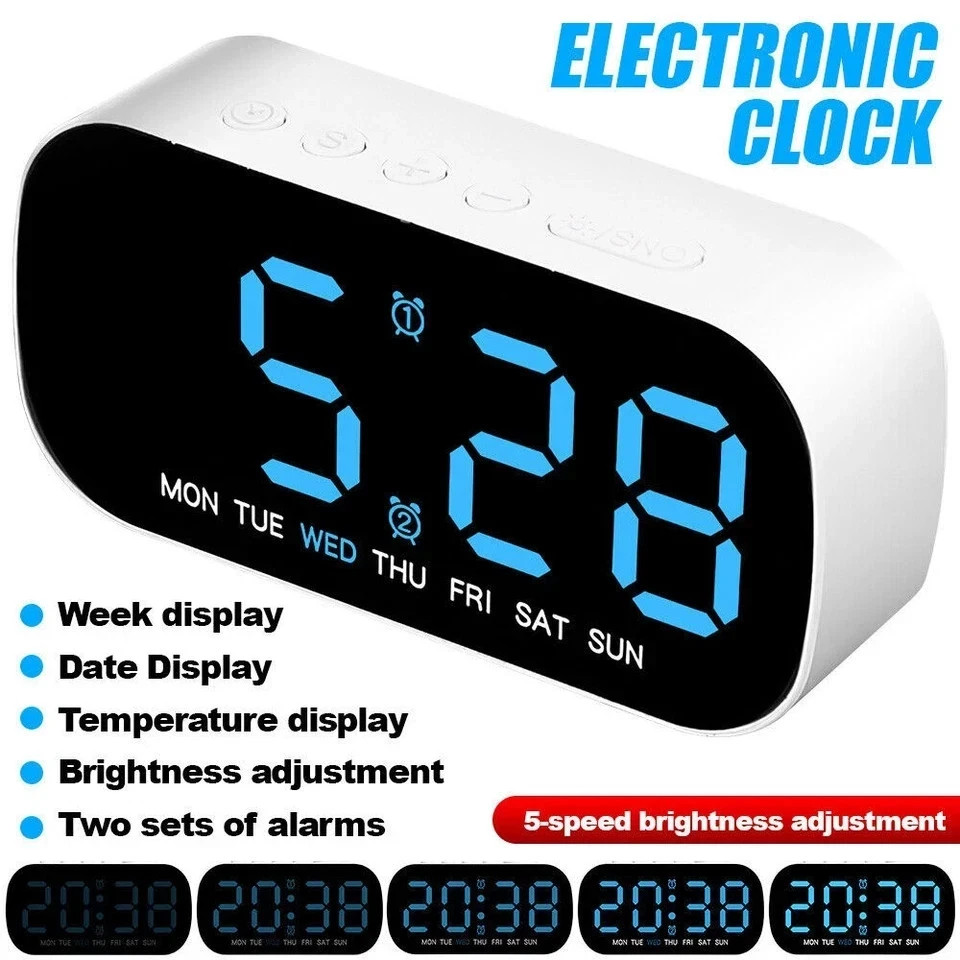 Digital Alarm Clock Bedside Wall Desk Clock LED Electric Date Temperature Table
