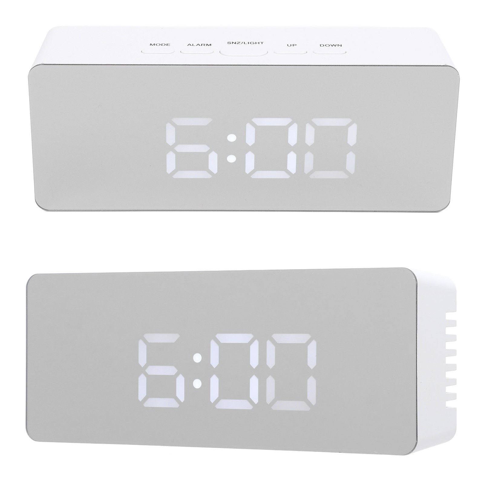 LED Mirror Digital Alarm Desk Clock Quiet 12/24 Hour Format Mirror Electric