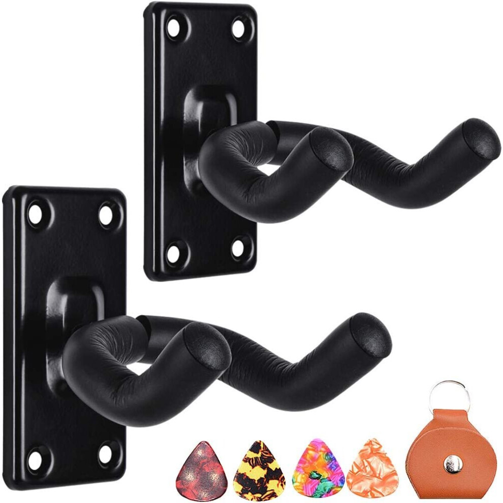 Guitar Hooks Wall Mount Electric and Bass Guitar Hooks (2 Pack Black Metal Guitar Hooks)