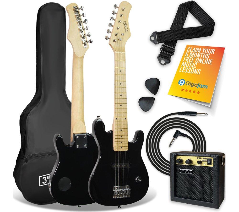 3Rd Avenue 1/4 Size Kids Electric Guitar Bundle - Black, Black