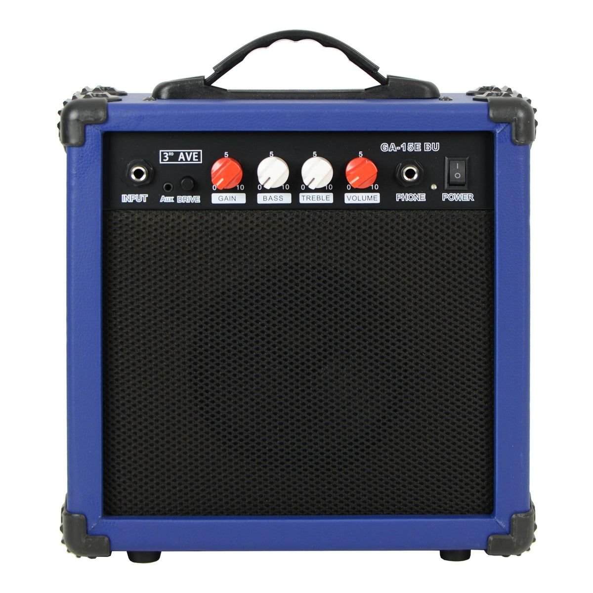 3rd Avenue Full Size 4/4 Electric Bass Guitar Beginner Pack Kit with 15W Amplifier, Bag, Cable, Strap, Stand and Spare Strings – Blue