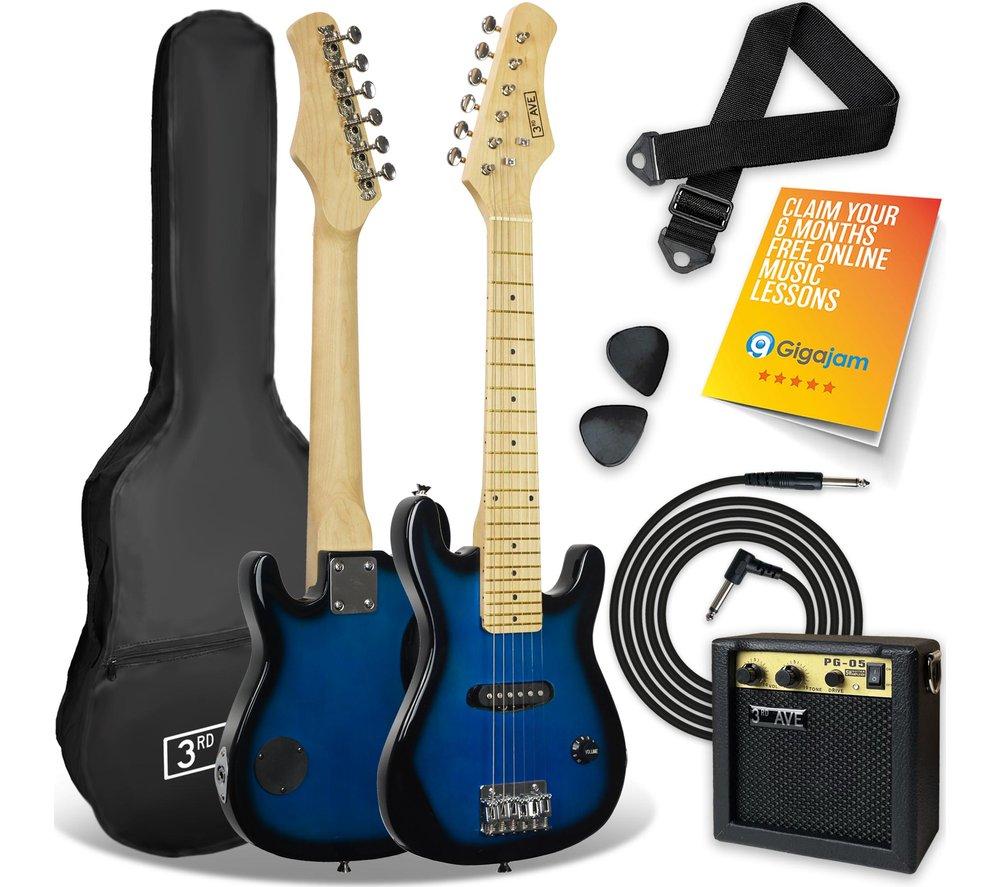 3RD AVENUE 1/4 Size Kids Electric Guitar Bundle - Blueburst, Blue,Black
