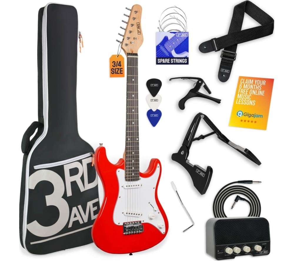 3rd Avenue 3/4 Size Electric Guitar Pack - Red, red