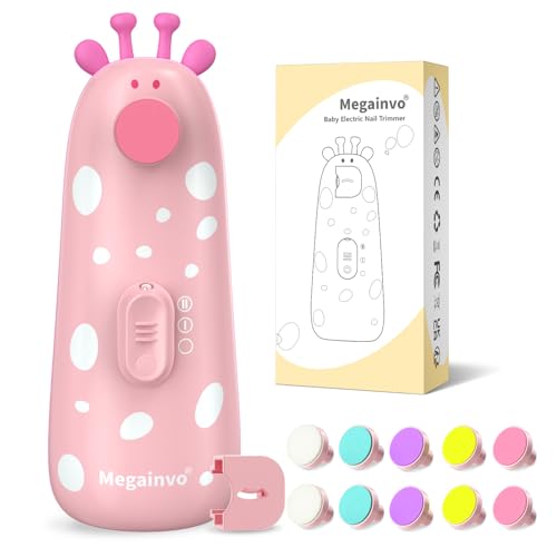 Megainvo Baby Nail File Electric,Safe Baby Nail Trimmer with 10 Grinding Heads, Whisper Quiet,LED Light Baby Nails Clippers Electric for Baby Newborn Toddler Fingers& Toenails Kits,Pink