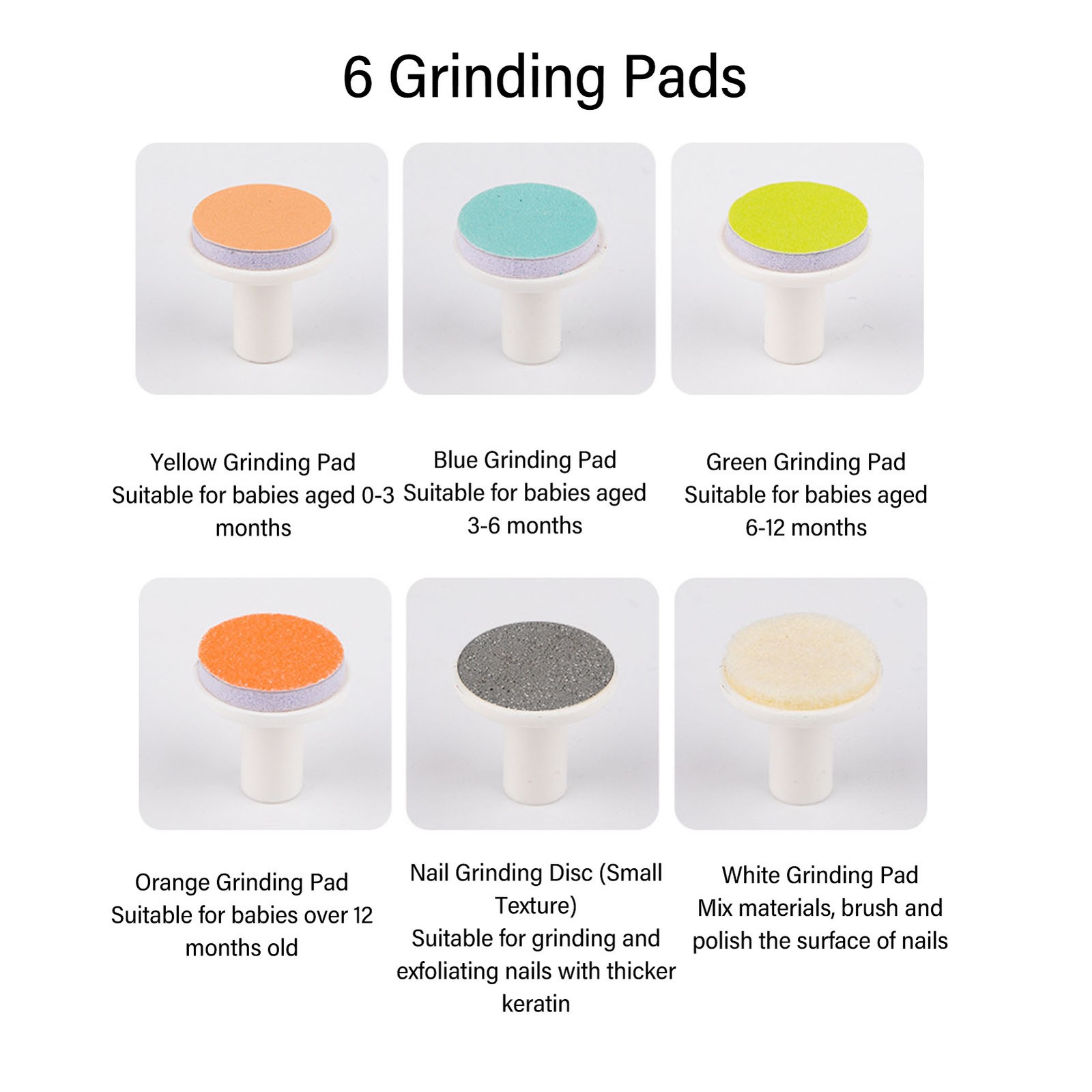 Baby Nail File, Baby Nail Clippers, Baby Nail File Electric with 6 Grinding Head