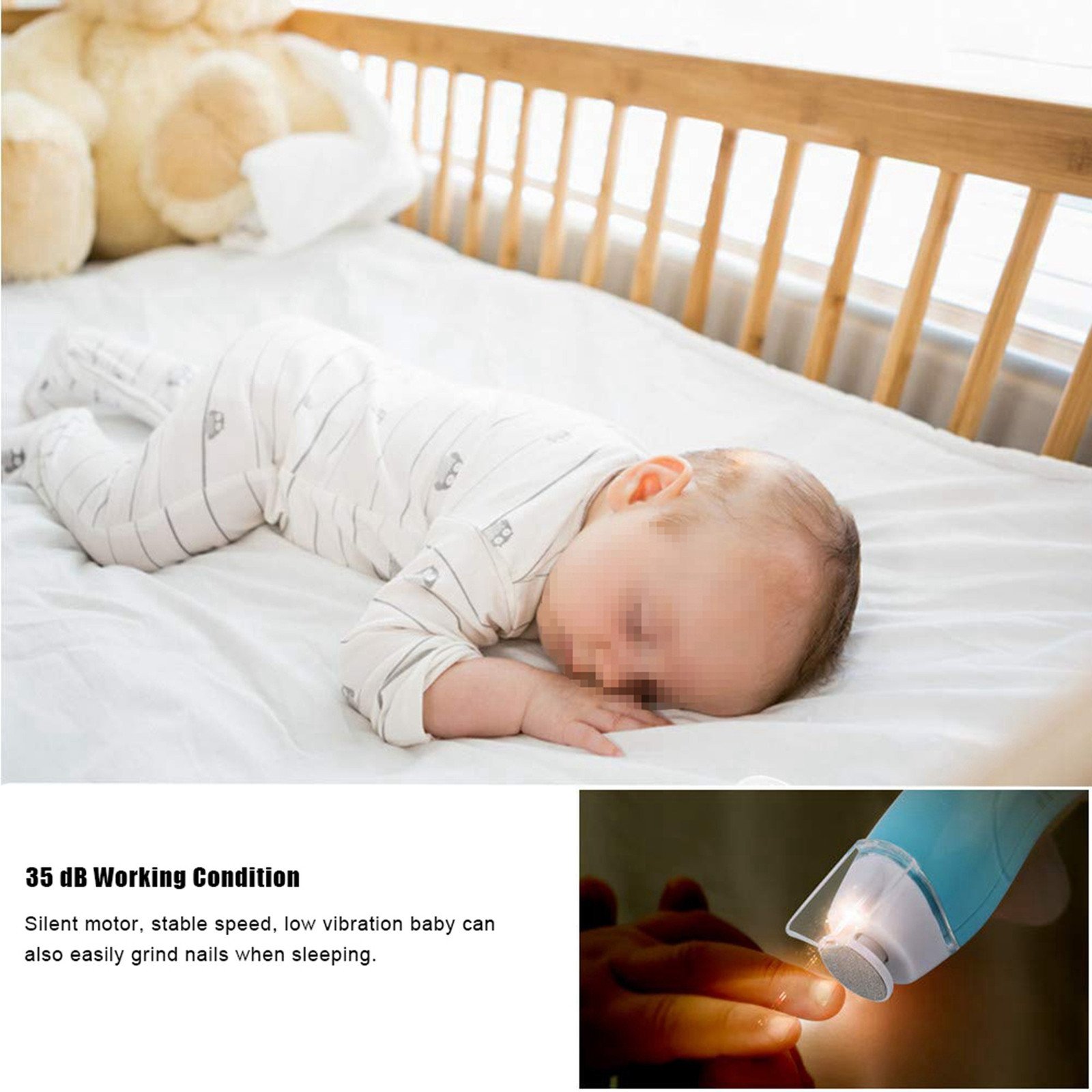 Megainvo Baby Nail File Clipper Trimmer,Electric Nail File with Light,Professional Safe Quite Baby Nail Trimmer,Automatic Baby Manicure Set for Newborn,Reusable Infant Nail File with 6 Grinding Heads