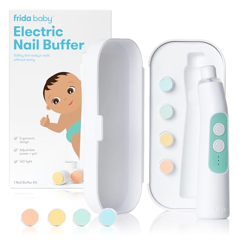 Frida Baby Electric Nail Trimmer, Safe & Easy Electric Nail File, Baby Nail Clipper Kit Suitable for Newborns, Toddler, and Children, 1 Electric Trimmer with LED Light + 4 Buffer Pads + Storage Case