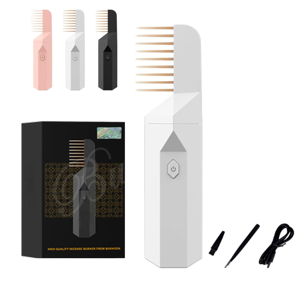 (White) Electric Hair Brush Incense Burner For Bakhoor Ramadan Dukhoon Arabic Aroma Diffuser For Home Office Car Rechargeable Mini Usb Hk