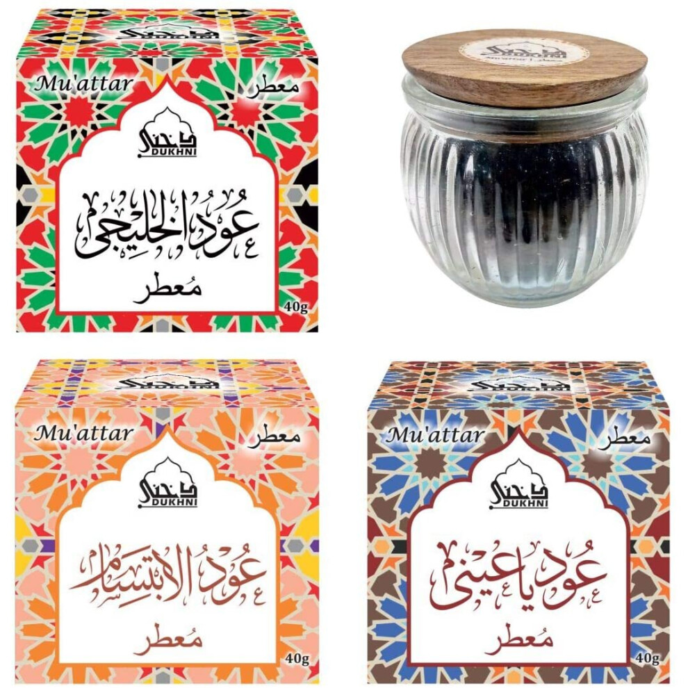 Oud Ya Aini, Oud Al Khaleeji, Oud Al Ibtisam Muattar Bakhoor - (3 Jar x 40g) Traditional Oud Bakhoor | Use with exotic bakhoor burner, electric OR