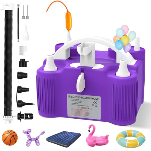 FLSEPAMB Electric Balloon Pump, Portable Dual Nozzle Balloon Inflator Pump with 2 Modes, Purple Balloons Machine with 6 Accessories for Party, Birthday, Wedding Decoration