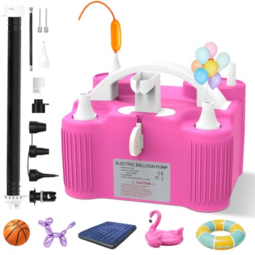 PlusFive Electric Balloon Pump, Electric Air Pump for Long Balloons Foil Balloons Sports Balls, Portable Pump for Inflatables Electric Pump for Birthday Wedding Christmas Decorations (Pink)