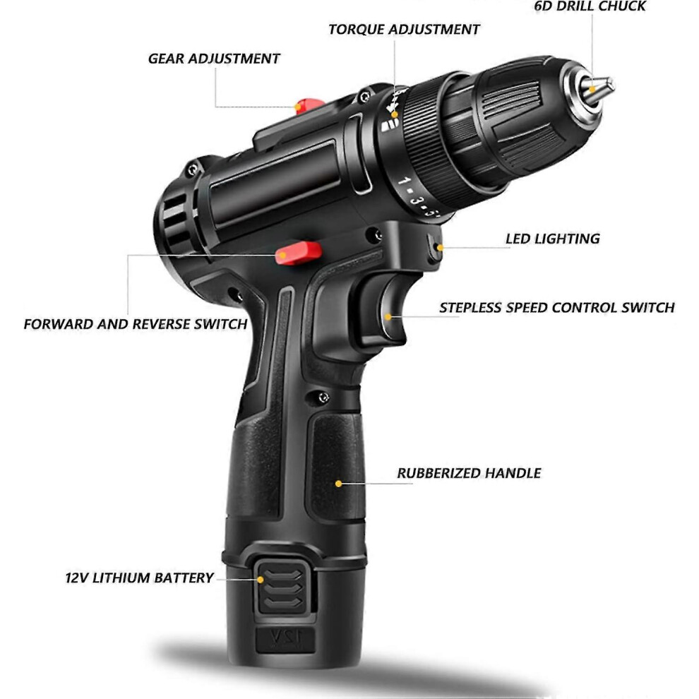 (As show, One size) 12v Lithium Rechargeable Electric Drill, Cordless Battery Electric Screwdriver For Household Power Tools