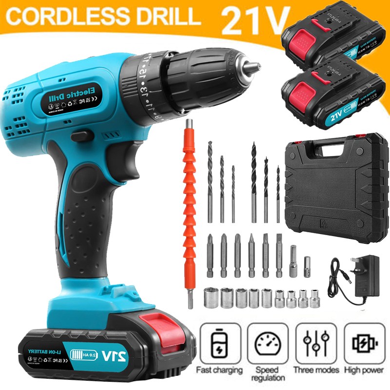 2 Battery Cordless Drill 21V Electric Screwdriver Set Combi Driver High Power