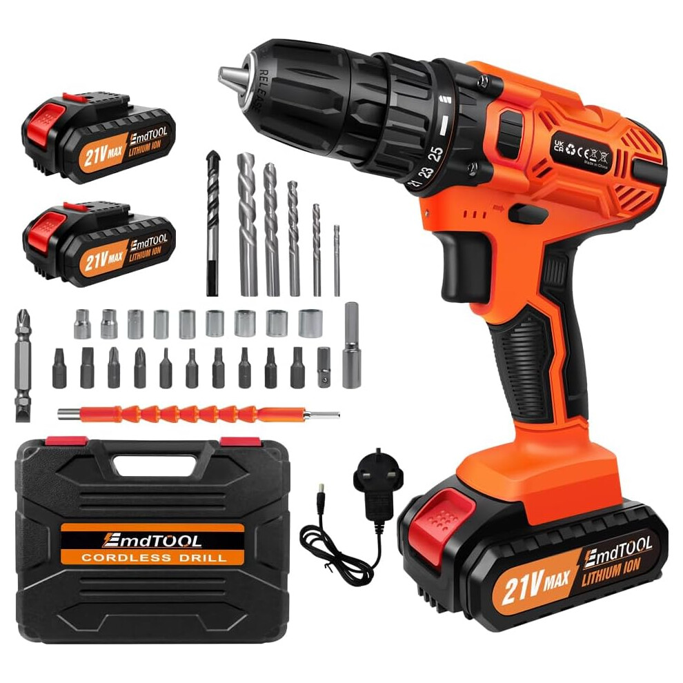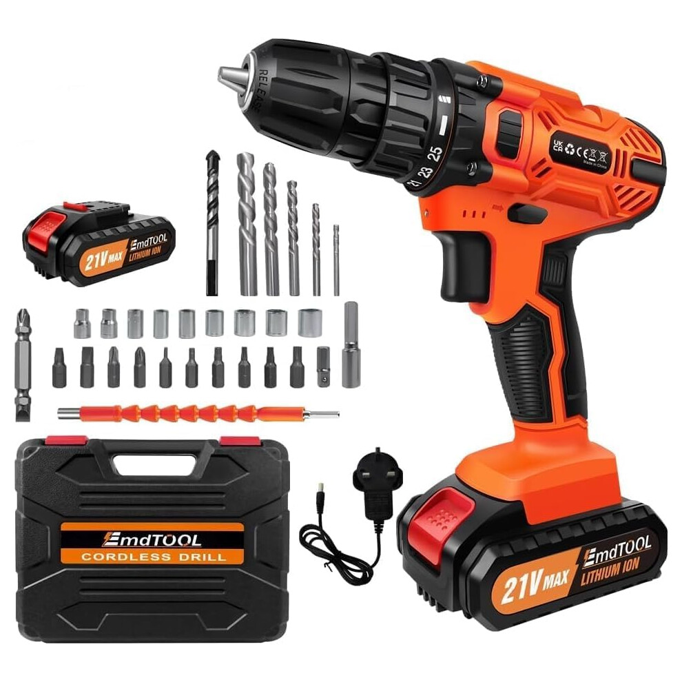 2 Battery 21V Cordless Drill Combi Driver High Power Electric Screwdriver Set UK