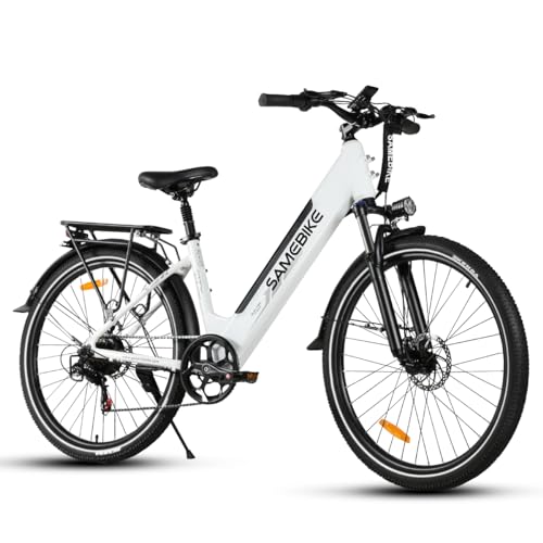 SAMEBIKE 26" Electric Bike for Adults EBike Commuter Electric Mountain Bike Electric Bicycle with 36V 15AH Removable Battery Electric Bikes for 7 Speed gears (white-1)