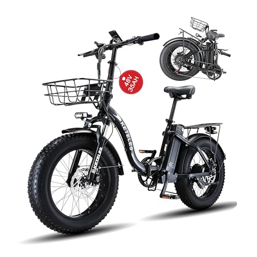 BYINGWD Folding Electric Bike for Adults with 48V 35AH Removable Battery, 20"*4.0" Fat Tire Electric Bicycle with 7-Speed,Color Display,Hydraulic Brakes,UK Stock. (KF9-standard, Black)